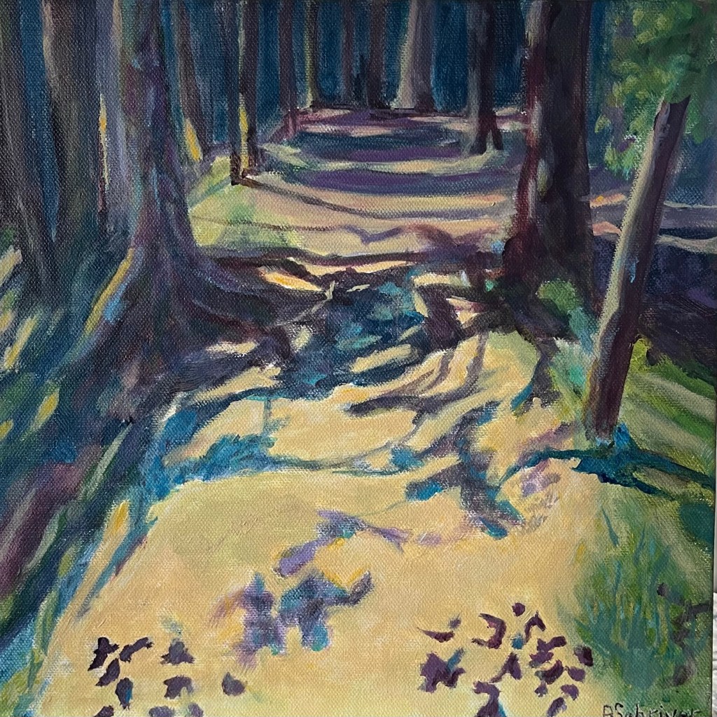 Betty Schriver -Shadows in the Woods 12 x 12″ original acrylic on gallery canvas $145