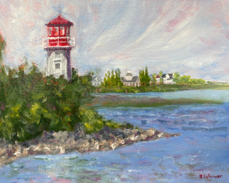 Betty Schriver -Lighthouse at Sylvan Lake 8×10 original acrylic on gallery canvas, framed $95
